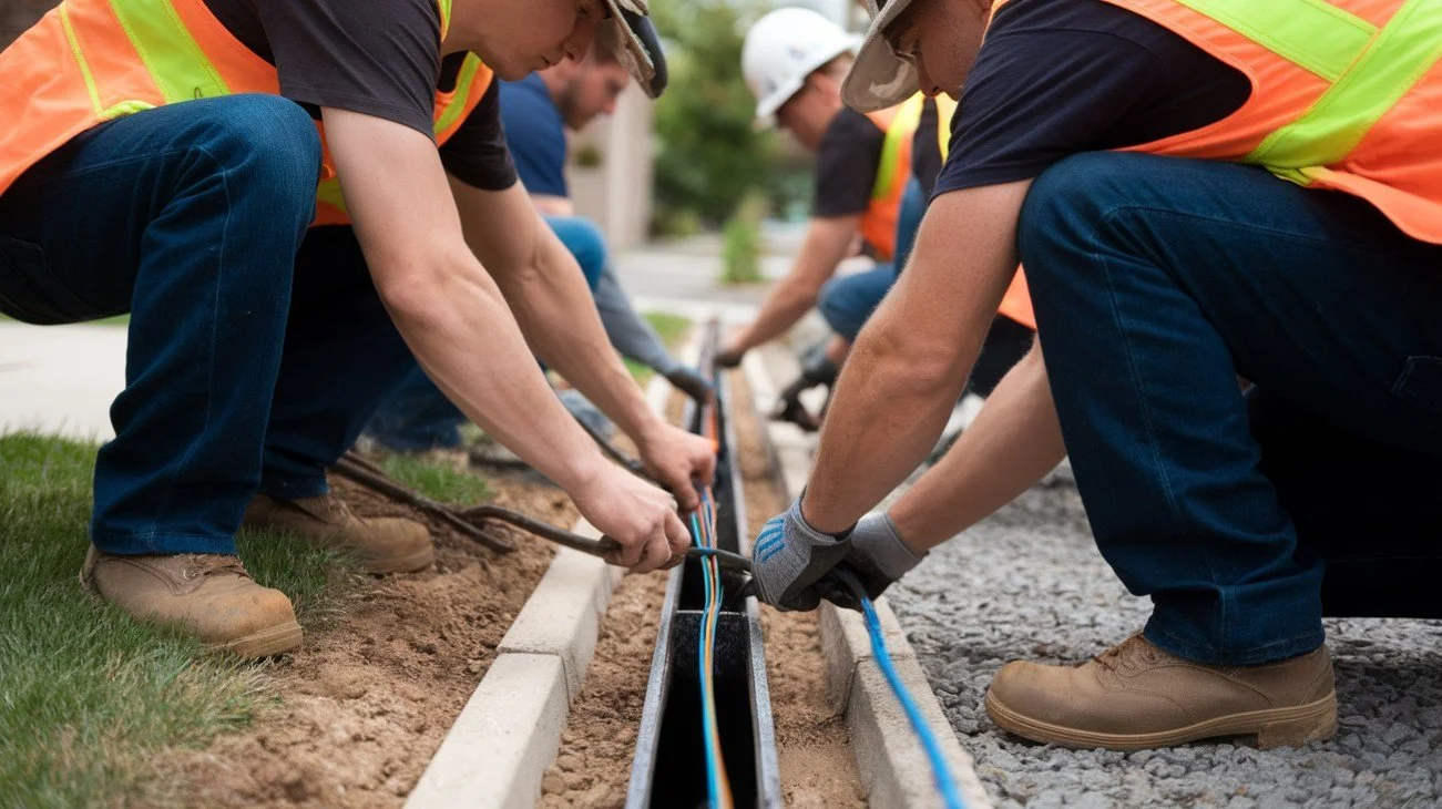 We use HDD rigs, microtrench cutters, compressors, and fiber optic cable blowing machines designed for Hexatronic Stingray fiber optic cable. Our teams are equipped with fusion splicers, OTDRs, optical power meters, and all necessary microtrench fittings, FDH components, and output equipment.